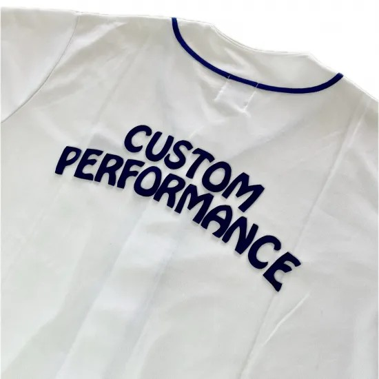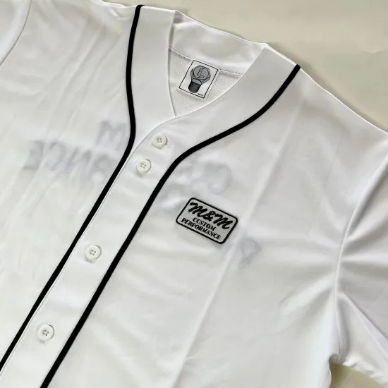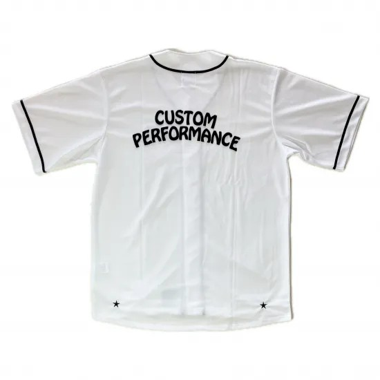 左胸に焼印ロゴのパッチ、バックに「Custom Performance」のパッチと星の刺繍を配した