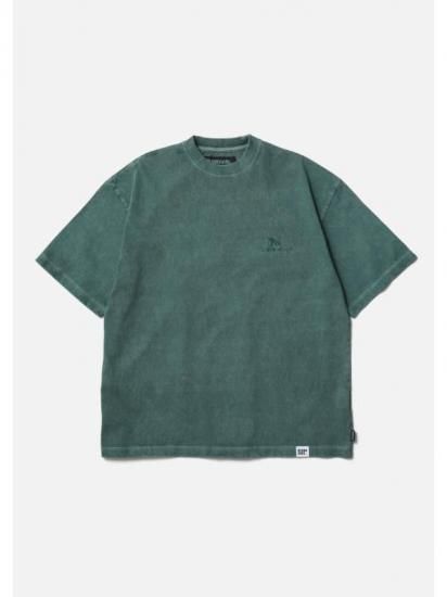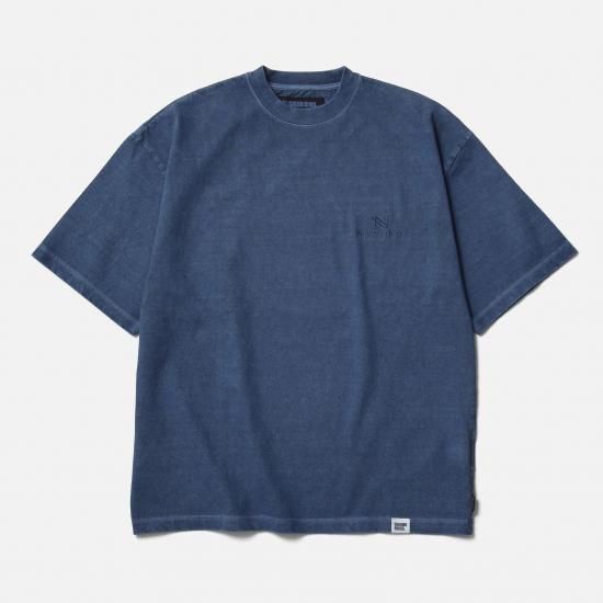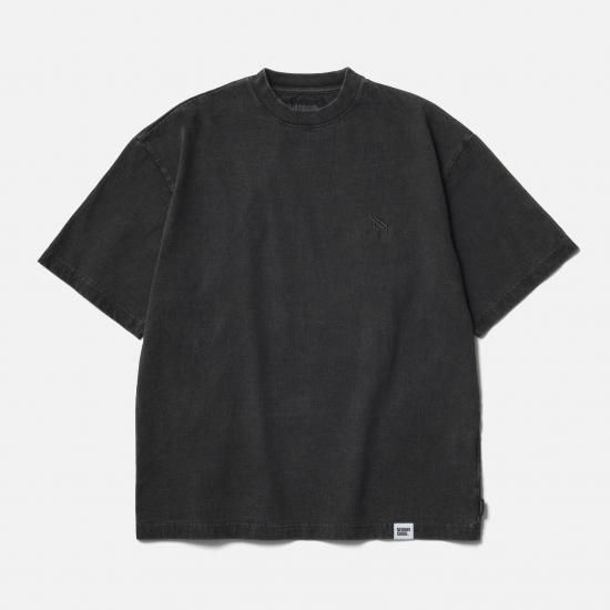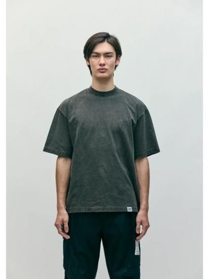 製品の状態でピグメントダイ加工を施した、コットン天竺素材のクルーネックカットソー。