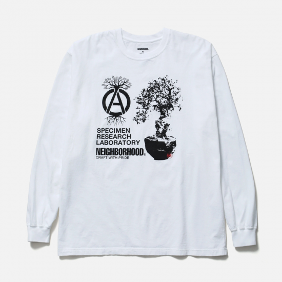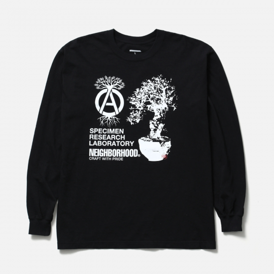 コットン天竺のオリジナルボディーを使用したロングスリーブTシャツ。フロントにSRLモチーフのグラフィックをプリント。ワンウォッシュ。