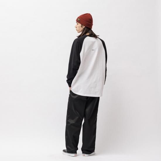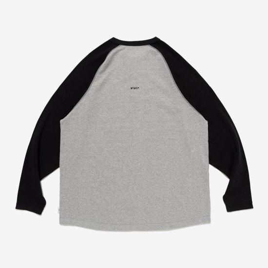 2重構造のプレーティング天竺を使用したラグランシャツ。