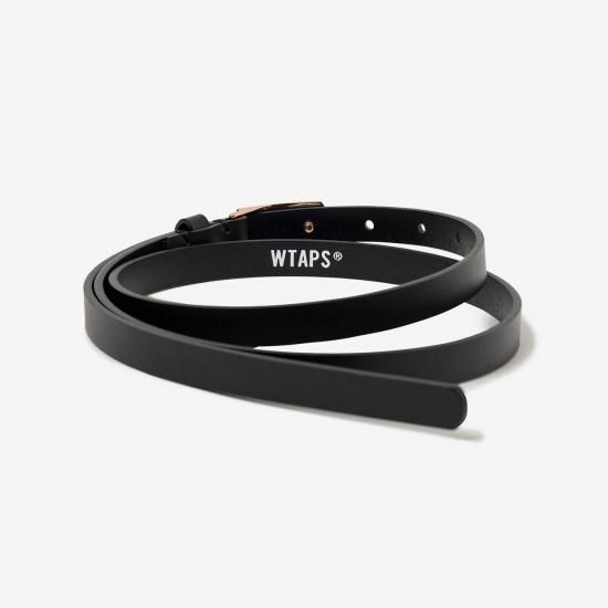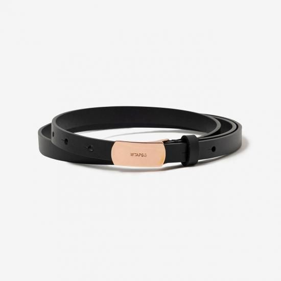 リサイクルレザーを使用した15mm幅のベルト。オリジナルのバックルが特徴。