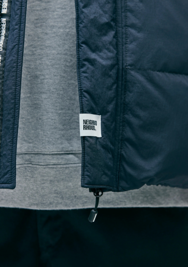 裾に調節用のゴムスピンドルを内蔵。左胸にロゴを刺繍。前立てにネームタグ、サイドシームにピスネームを付属。