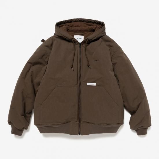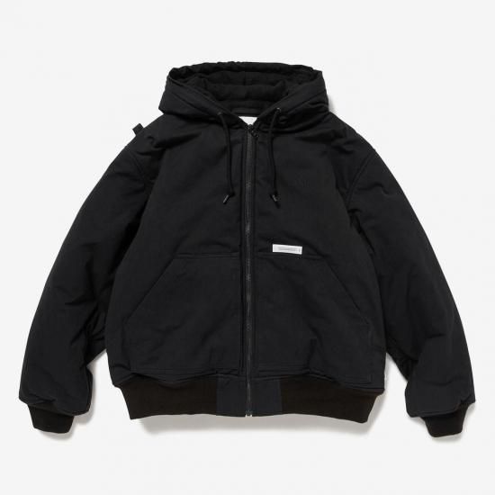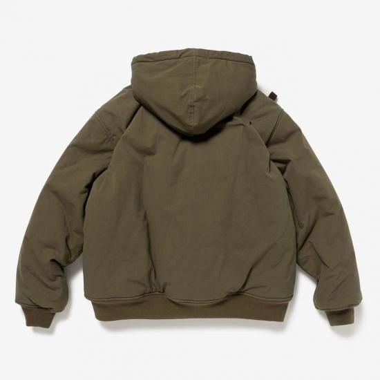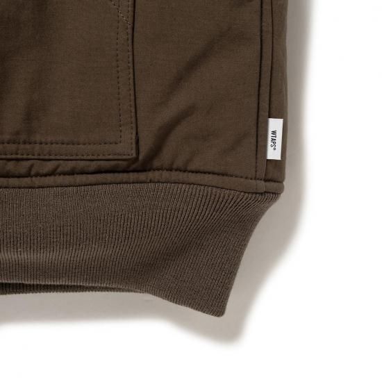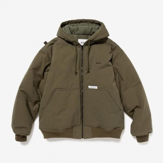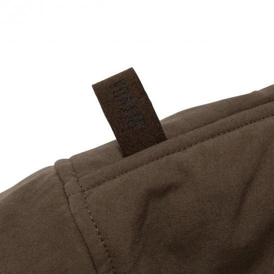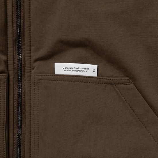 高密度のウェザー生地を使用した中綿入りジップアップジャケット。