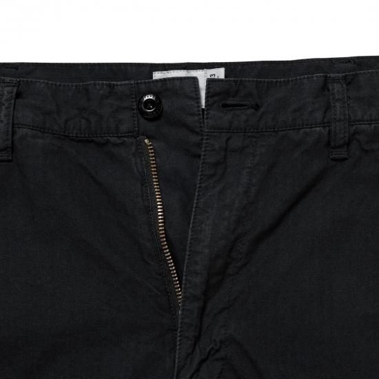リップストップ生地を使用した6ポケットトラウザーズ。製品で硫化染めとバイオ加工を施した仕様。