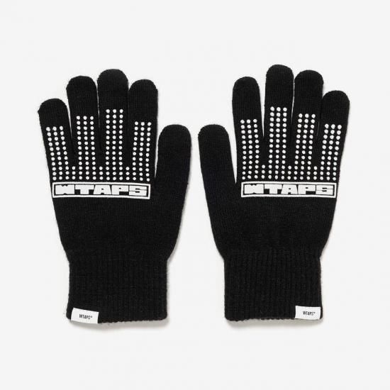 立体的なプリントの施されたアクリルニットグローブ。スマートフォンの操作に対応。