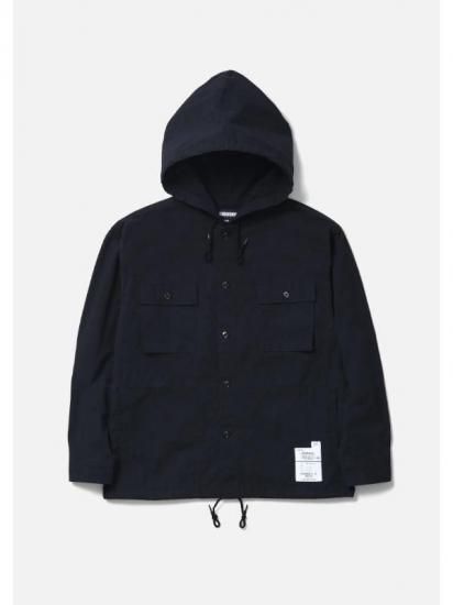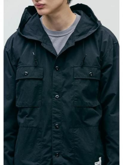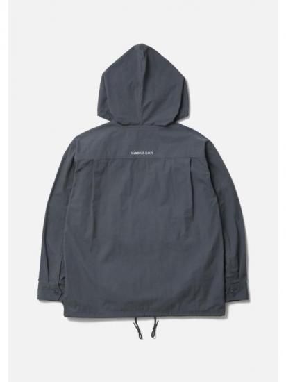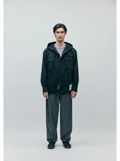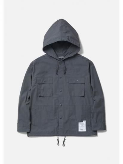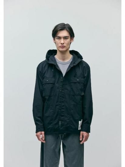 生地の凹凸感が特徴的な高密度の綿/ナイロン混紡素材を使用したフーデッドシャツ。